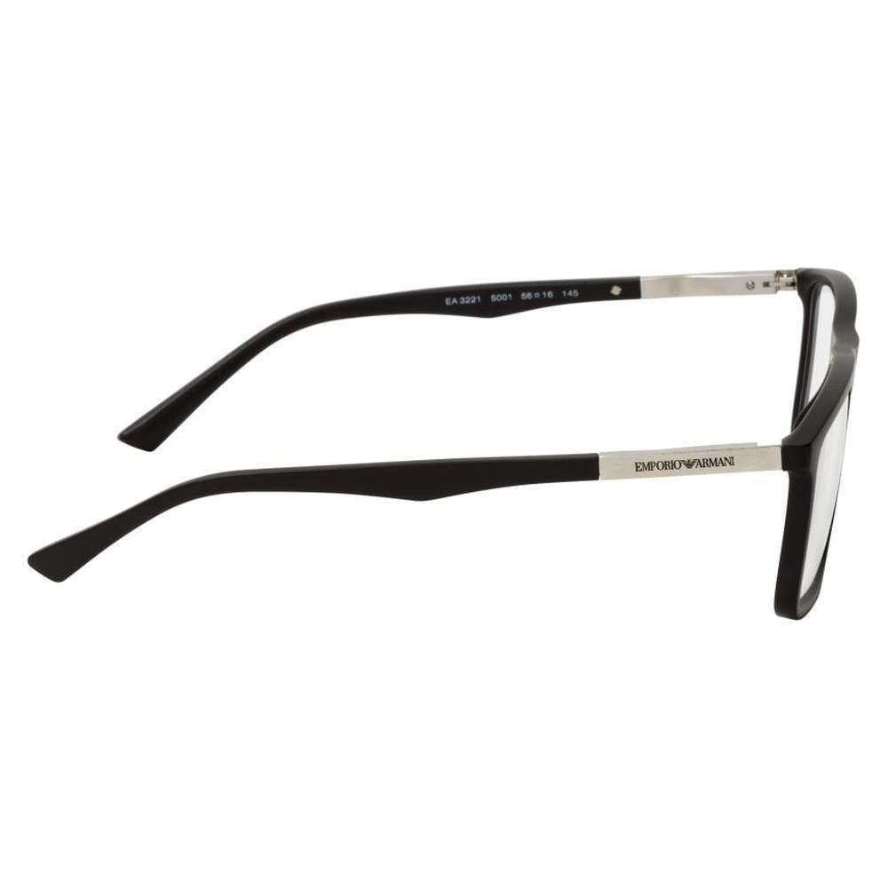 EMPORIO ARMANI EA 3221 5001 is a Men Optical Frame product by the brand EMPORIO ARMANI. The front color is Matte Black, and the temple color is Matte Black. The lens color is Clear, and it has a lens diameter of 54 mm, a bridge width of 16 mm, and temple length of 145 mm. This Optical Frame is made from Plastic, Aluminium material.