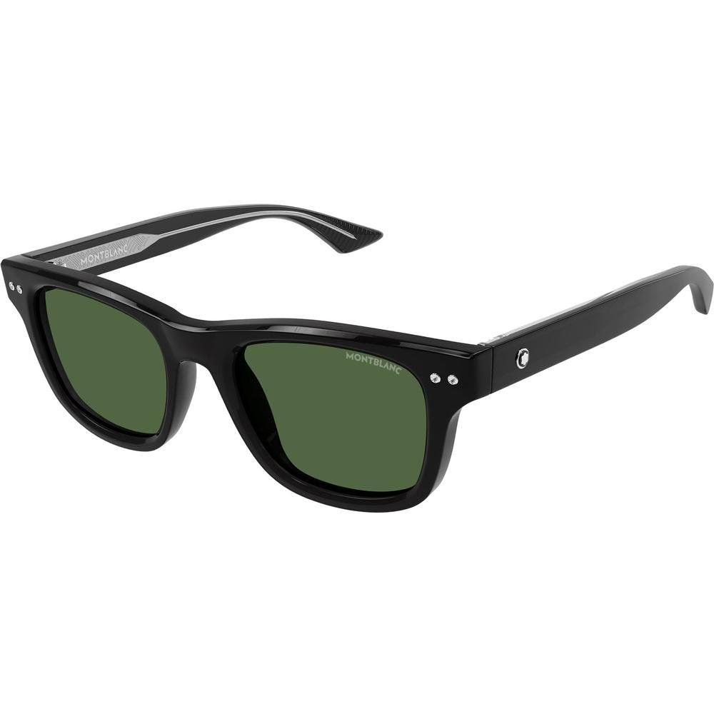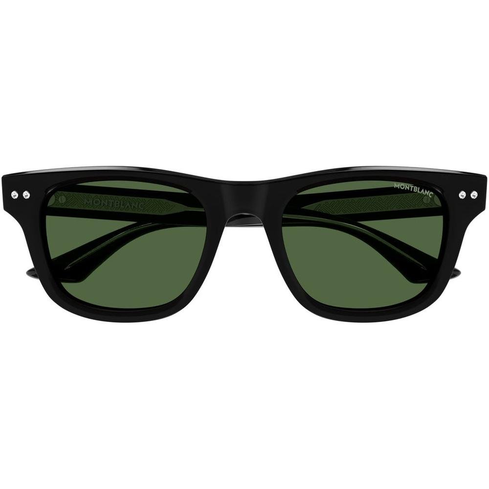 MONT BLANC MB0254S 006 is a Men Sunglass product by the brand MONT BLANC. The front color is Black, and the temple color is Black. The lens color is Green, and it has a lens diameter of 53mm, a bridge width of 20mm, and temple length of 145mm. This Sunglass is made from Acetate material.
