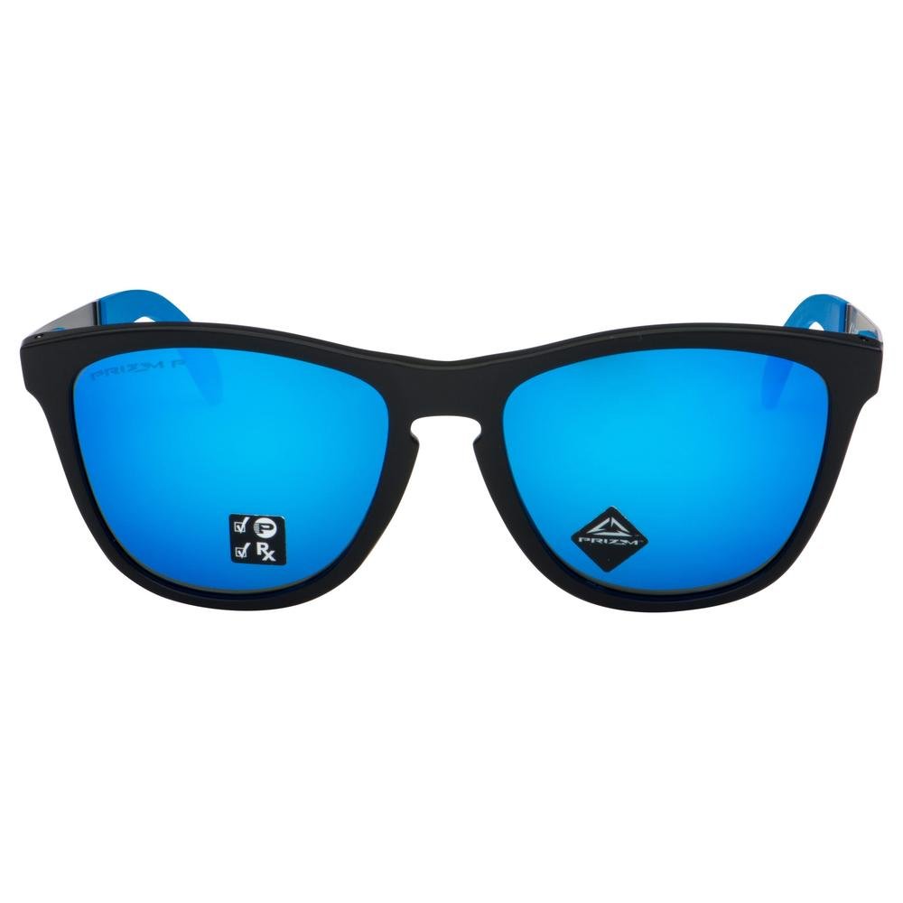 OO9428-1955 OAKLEY is a UNISEX Sunglass product by the brand OAKLEY. The front color is Matte Black, and the temple color is Black / Blue. The lens color is Prizm Sapphire Polarized, and it has a lens diameter of 55mm, a bridge width of 17mm, and temple length of 140mm. This Sunglass is made from Metal, Plastic material.