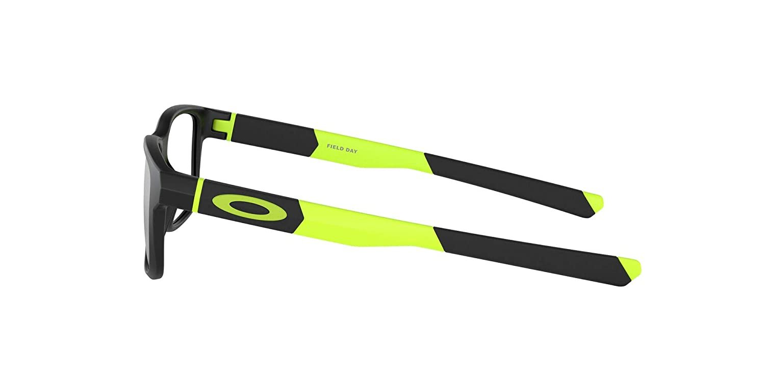 OAKLEY OY8007-0150 is a Kids Optical Frame product by the brand OAKLEY. The front color is Satin Black, and the temple color is Black / Fluorescent Yellow. The lens color is Clear, and it has a lens diameter of 50mm, a bridge width of 15mm, and temple length of 128mm. This Optical Frame is made from Plastic material.
