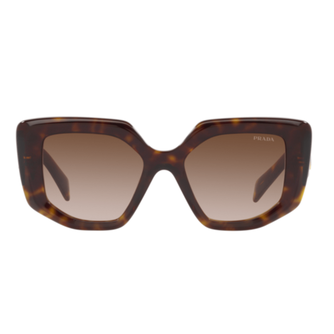 PRADA SPR 14Z 2AU 6S1 3N is a Women Sunglass product by the brand Prada. The front color is HAVANA, and the temple color is HAVANA. The lens color is Brown Gradient, and it has a lens diameter of 50mm, a bridge width of 18mm, and temple length of 140mm. This Sunglass is made from Acetate material.