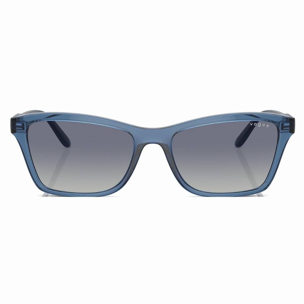 VOGUE VO 5551 S 30854L is a Women Sunglass product by the brand VOGUE. The front color is Blue, and the temple color is Blue. The lens color is Grey Gradient Blue, and it has a lens diameter of 54mm, a bridge width of 17mm, and temple length of 140mm. This Sunglass is made from Nylon material.