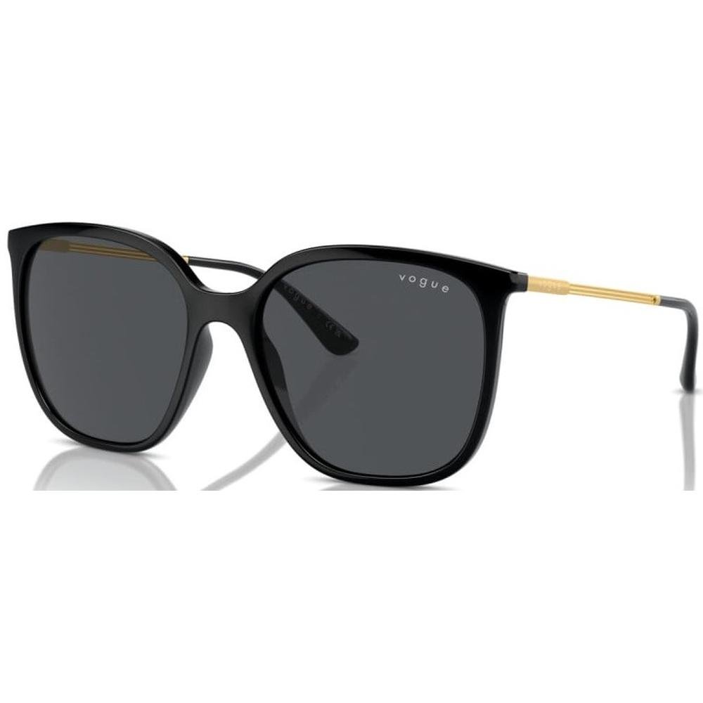VOGUE VO 5564-S W44/87 is a Women Sunglass product by the brand VOGUE. The front color is Black, and the temple color is Gold. The lens color is Dark Grey, and it has a lens diameter of 54mm, a bridge width of 17mm, and temple length of 140mm. This Sunglasses is made from Nylon material.
