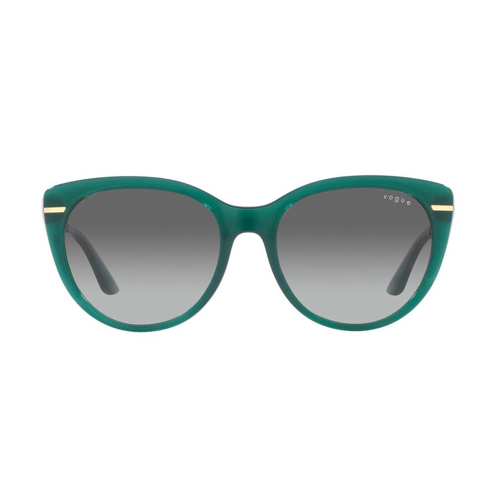 VO5498-SI 283411 is a Women Sunglass product by the brand VOGUE. The front color is GREEN, and the temple color is GREEN. The lens color is GREY, and it has a lens diameter of 56mm, This Sunglass is made from Shell material.